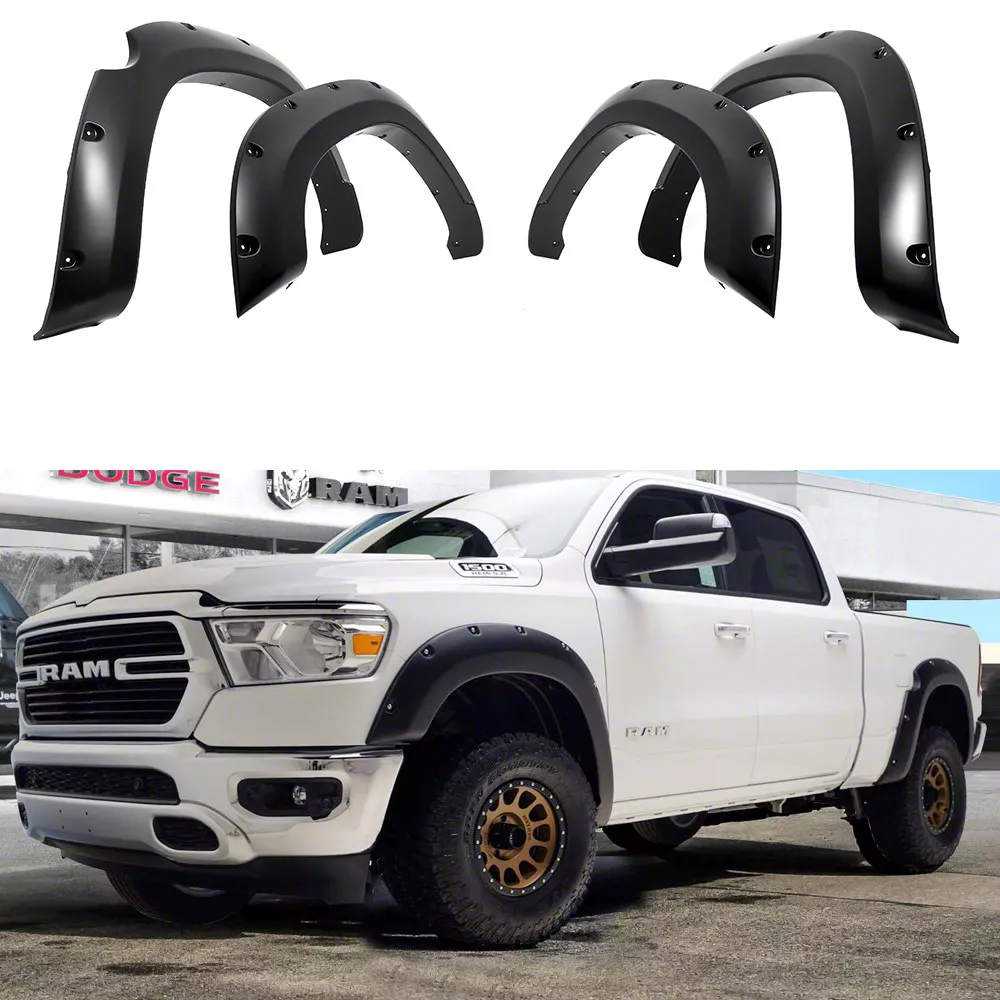 Application. This Pocket Dimple Style Fender Flares in Smooth Black fits all 2019-2024 RAM 1500 models (Excluding Rebel and TRX).