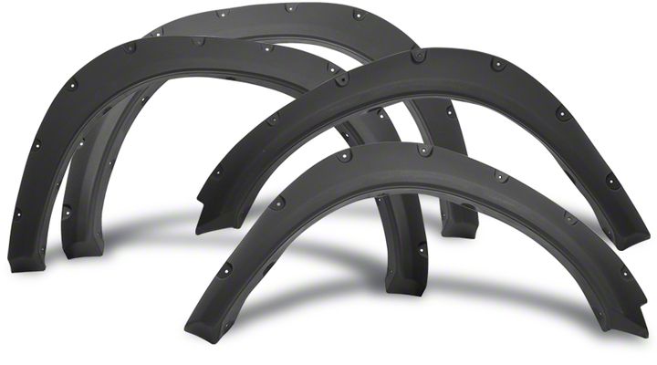 Eye-Catching Rivet-Style Appeal. These Pocket Style Fender Flares in Textured Black add an eye-catching appeal to your RAM 1500 truck with their rugged, rivet-style feature. They offer extra tire coverage for superb protection against road hazards that cause scratches and dings. These fender flares also deliver superb clearance, so you can outfit your truck with larger tires that are ideal for rugged adventures.