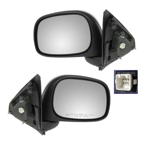 Construction and Features. Built with durable materials, these mirrors are designed to withstand the rigors of daily use while maintaining their functionality and appearance. The powered adjustment feature allows you to easily position the mirror glass for optimal visibility, enhancing driver safety and convenience. The plug-and-play design makes this a direct replacement for factory mirrors, ensuring a seamless fit without additional modifications.