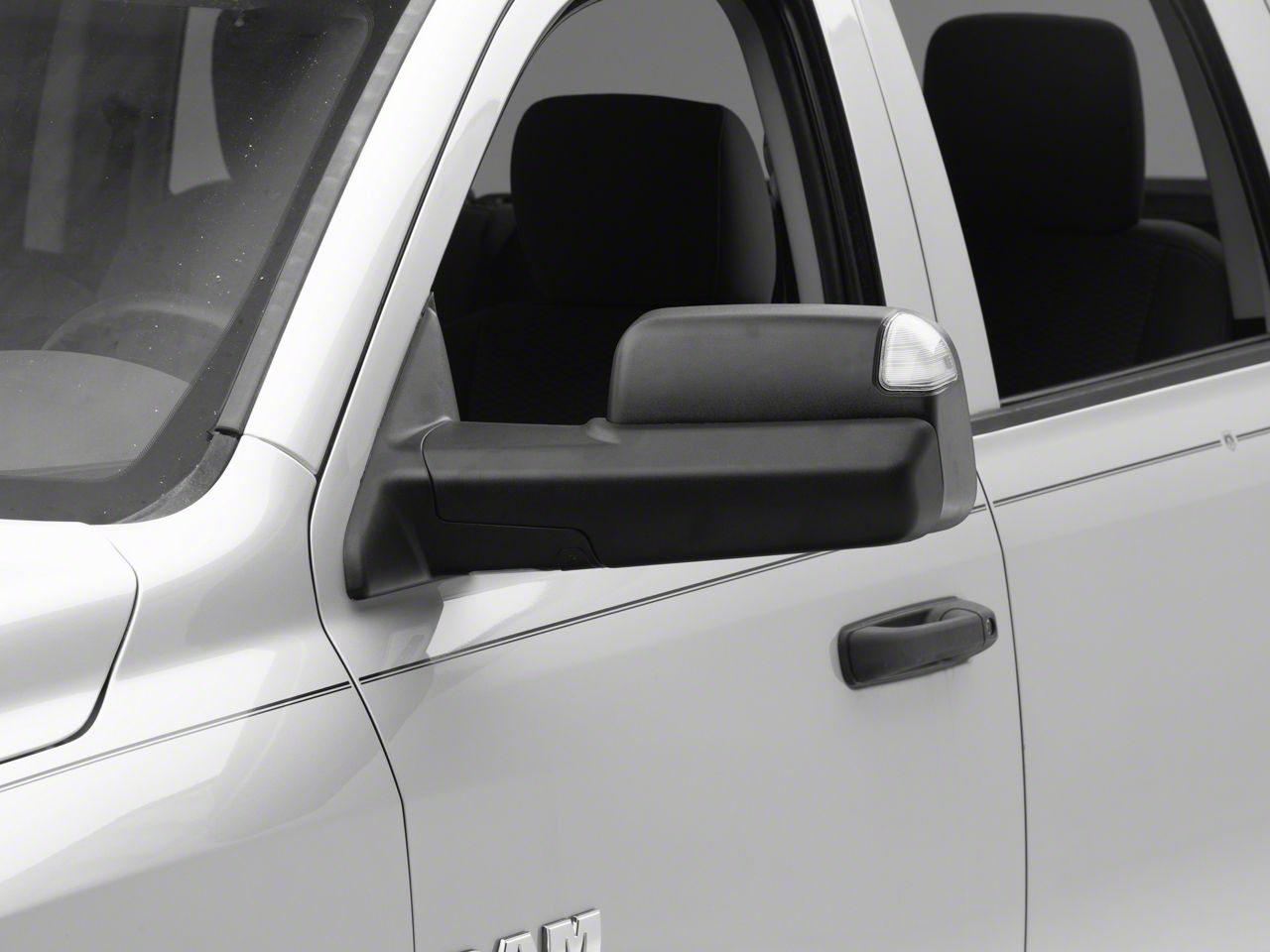 Towing Mirrors. Manual Telescoping Towing Mirrors are a great way to increase your rear visibility. These Towing Mirrors are designed to replace the power-operated, heated, manual folding mirrors found on 2013-2015 RAM 1500 models equipped mirror mounted with LED turn signals and puddle lights. These Manual Telescoping Towing Mirrors are the ideal solution for RAM's that are driven regularly, but only tow occasionally. Mirror length is approximately 19.5-inches when fully extended and 16.5-inches when closed.