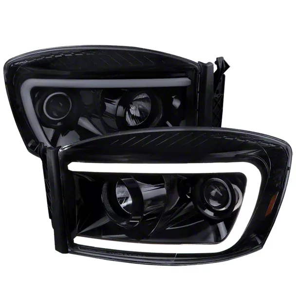 Application. Projector Headlight; LED DRL Bar; Smoked; Matte Black is designed to accommodate all 2006-2008 Dodge RAM 1500 models.