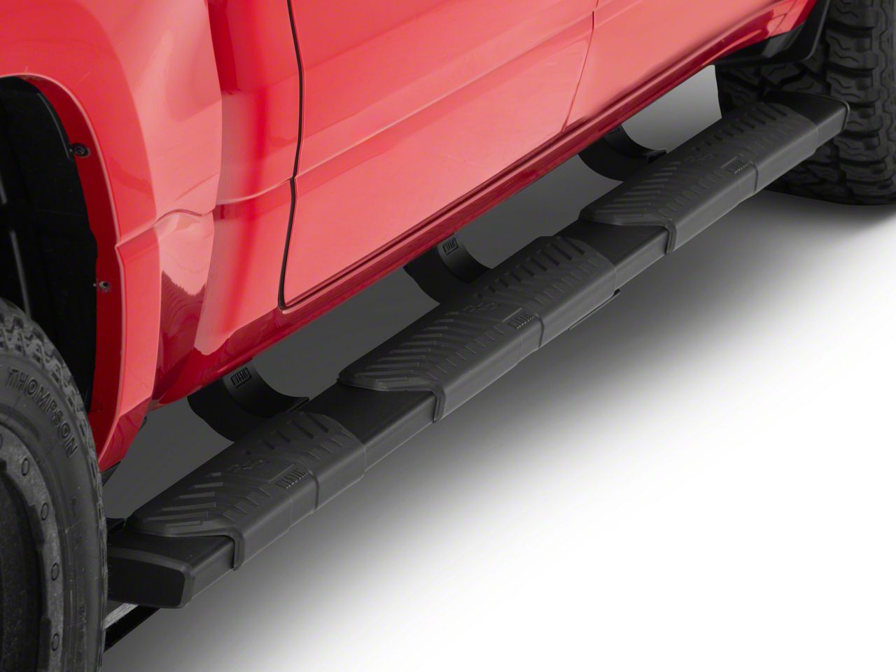 High-Grade Steel Construction. The R5 M-Series Step Bars are made of premium corrosion-resistant stainless steel. These steel frameworks are fortified by a textured black powder-coated finish for an aggressive look and long-term functionality. Moreover, the step pads are crafted from injection molded polymers for supreme durability. These bars also come with isolator brackets for extra stability of the step area that extends past the vehicle cab.