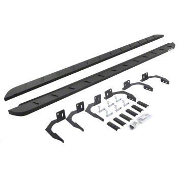 Description. The RB10 Slim Line Running Boards offer the same heavy duty toughness as the original RB Series, but with a slimmer design that fits tighter along the cab for increased ground clearance when off-roading. Constructed from 16-gauge zinc-coated galvanized steel, the Raptor-inspired boards were built to protect your panels from ?ying debris while providing a full-length step platform. The classic louvered design is four inches across at its widest point (compared with six inches of the original RB10) and are offered in cab-length sizes that fit most popular trucks, Jeeps and SUVs. The RB10 Slim Line is available with a protective bedliner coating or textured black powder coat finish that carries a 5-year limited warranty.