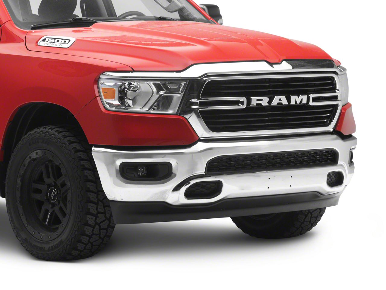 OEM-Style Front-End Protection. This Front Bumper is designed to restore factory-level protection and appearance to your 2019–2024 Dodge RAM 1500. Featuring a polished chrome finish and a stock-style design, it offers a clean, refined look while helping to shield your truck's front end from everyday bumps, scrapes, and minor impacts. It’s a practical and stylish upgrade or replacement for worn or damaged original bumpers.