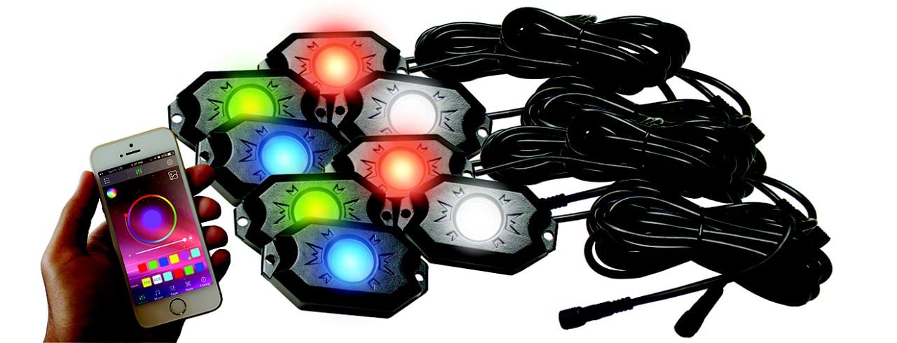 Application. The RGBW Hi-Power Rock Lights with Bluetooth APP offer universal fitment.