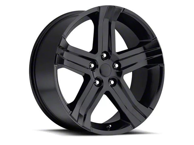 RT Replica Gloss Black 5-Lug Wheel; 22x9; 20mm Offset offers a sleek and assertive aesthetic that enhances a vehicle's visual presence. Its gloss black finish amplifies the appeal, making it a great match for bold styling themes. This wheel brings a refined edge to any build while maintaining a confident stance on the road. Crafted to elevate the appearance of a wide range of vehicles.