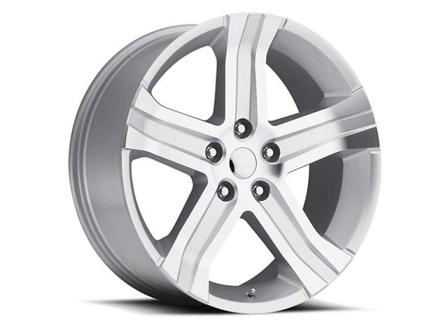 The 22x9 RT Replica Silver Machine Face 5-Lug Wheel; 22x9; 20mm Offset is completed in a high-quality silver machined face, which is sure to turn heads. There is a durable clear coat for extra protection and enhanced appearance that can withstand the rigors of the road.
