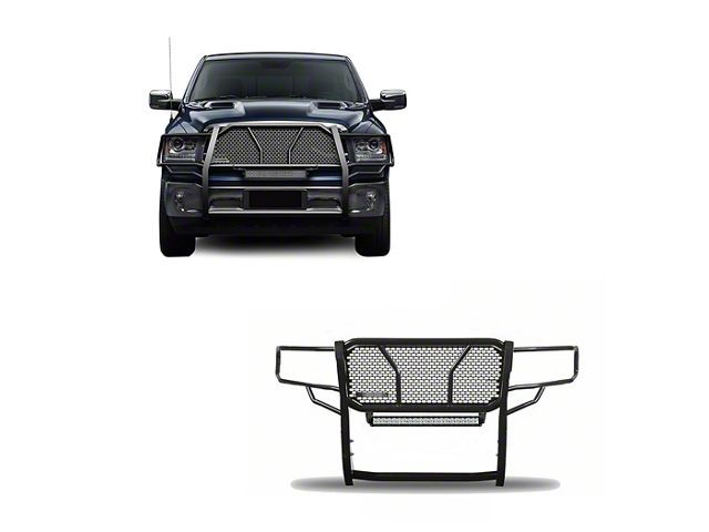 Application. The Rugged Grille Guard with 20-Inch LED Light Bar - Black is compatible with the 2009-2018 Dodge RAM 1500, Excluding Rebel & Sport Models.