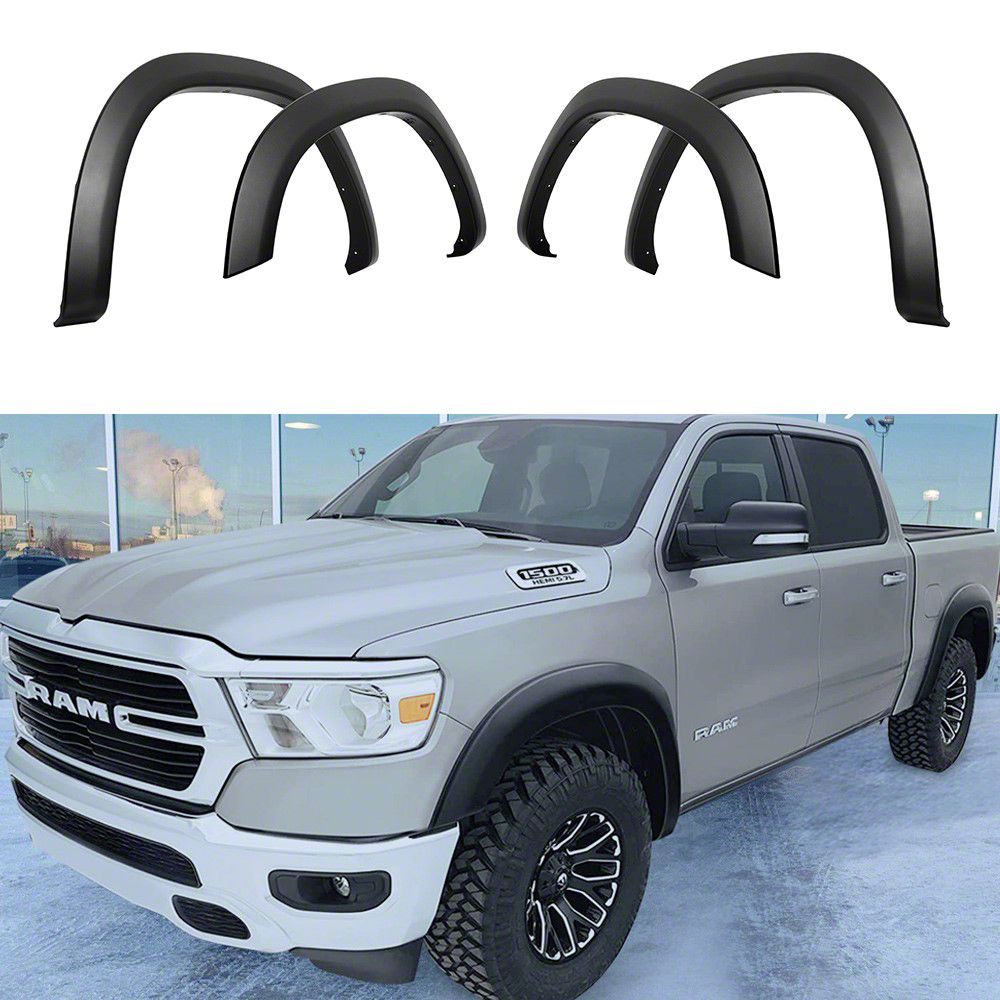 Fender Care. Level up your RAM’s styling with the Rugged OE Style Fender Flares in Smooth Black. These 4-piece fender flares come in a rugged but OE-patterned design that is sure to transform the look of your RAM. It makes your front and rear wheel look wider and your truck meaner. These flares not only provide more tire clearance and enough tire coverage, but they also shield your car from damage caused by road debris and give your truck a superb overall aggressive attitude.