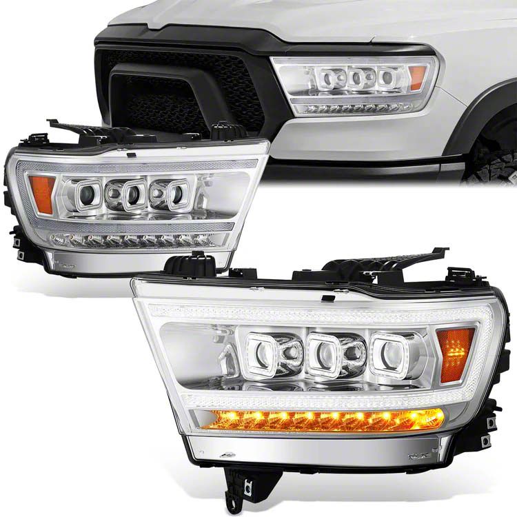 Application. These Sequential Full LED DRL Projector Headlights fit 2019-2024 RAM 1500 models equipped with factory halogen headlights.