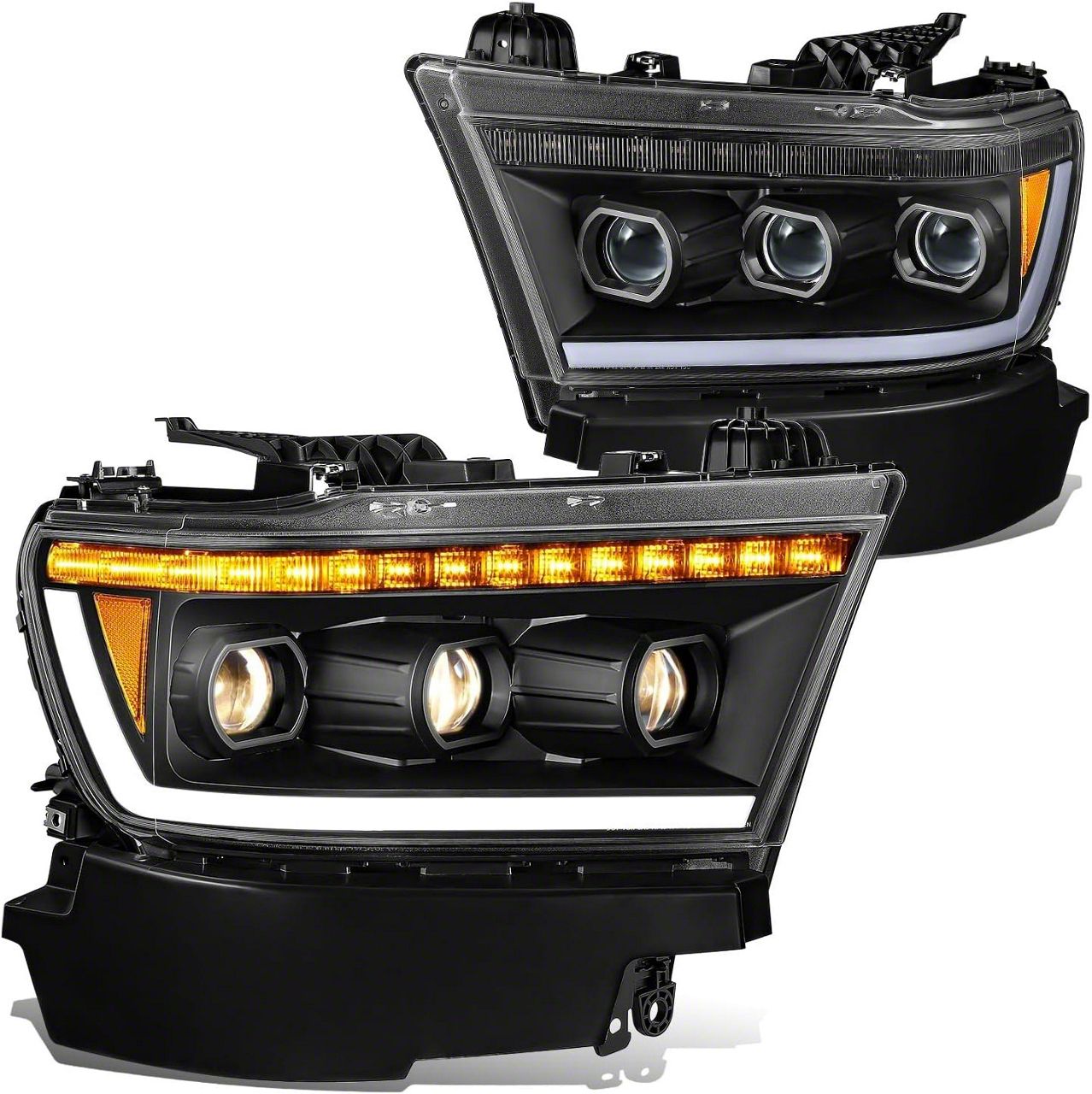 Application. These Sequential LED Projector Headlights fit 2019-2024 RAM 1500 models equipped with factory halogen headlights.