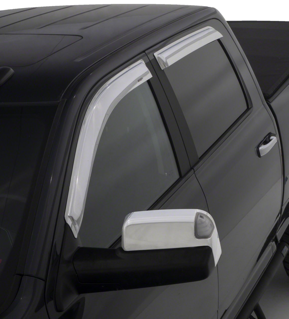 Application. This Side Window Deflector; Tape-Onz; 4 Piece; Chrome was designed to fit all 2011-2024 RAM 3500 Crew Cab, Mega Cab models.