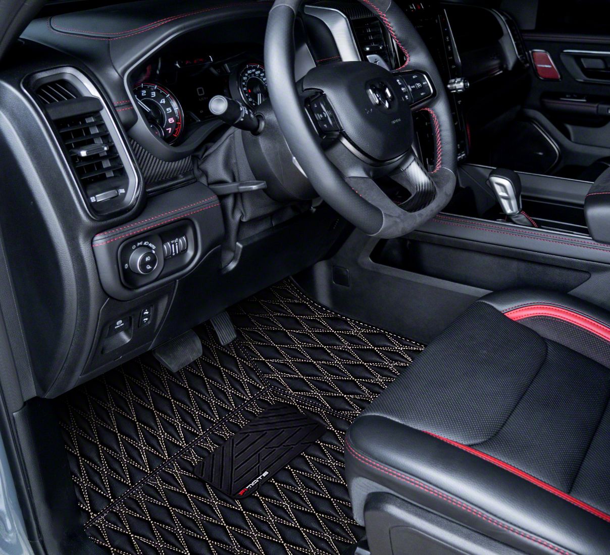Single Layer Diamond Front and Rear Floor Mats; Black and White Stitching (09-18 RAM 1500 Quad Cab w/ Front Bucket Seats)Find parts that fit my vehicle