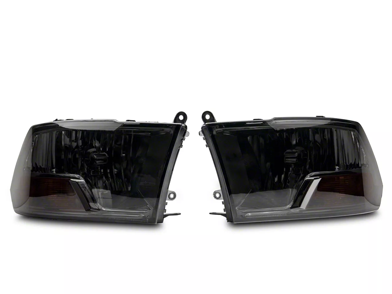 Improves Appearance and Visibility. Improve the appearance and nighttime driving visibility of your 2009-2018 RAM 1500 just by replacing your old weathered, worn out, and yellowing factory headlights with a brand new pair of Factory Style Dual Headlights that feature smoked lenses and black housings. These Headlights feature a clean OE style design that will give your RAM a fresh new look.