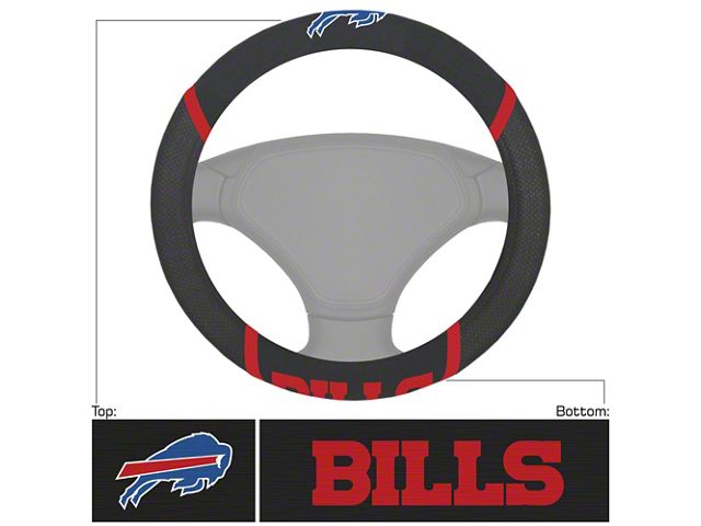 Application. This Steering Wheel Cover with Buffalo Bills Logo; Black is a universal fitment product, but some adaptation may be required depending on the size of your vehicle’s steering wheel.