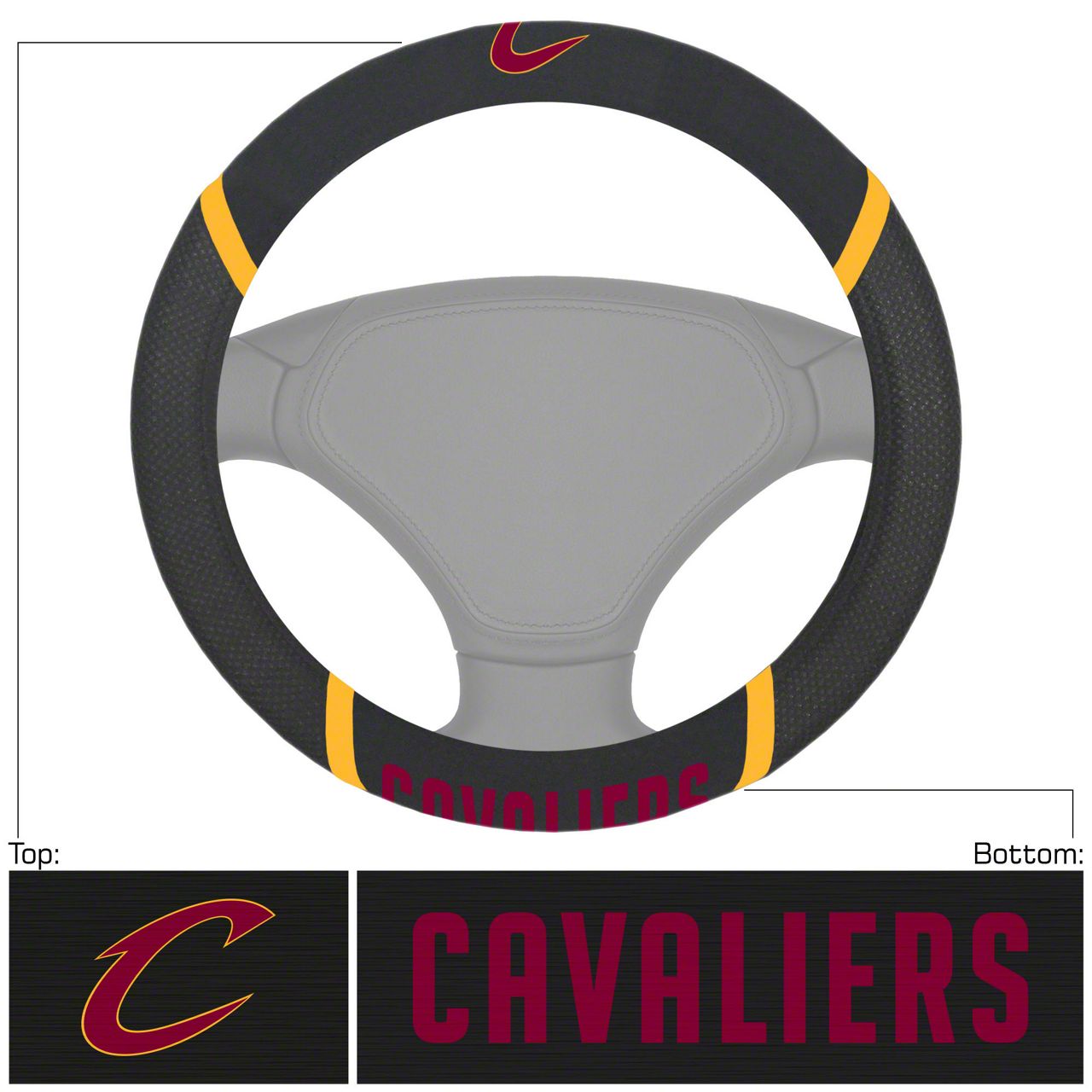 Steering Wheel Cover with Cleveland Cavaliers Logo; Black (Universal; Some Adaptation May Be Required)