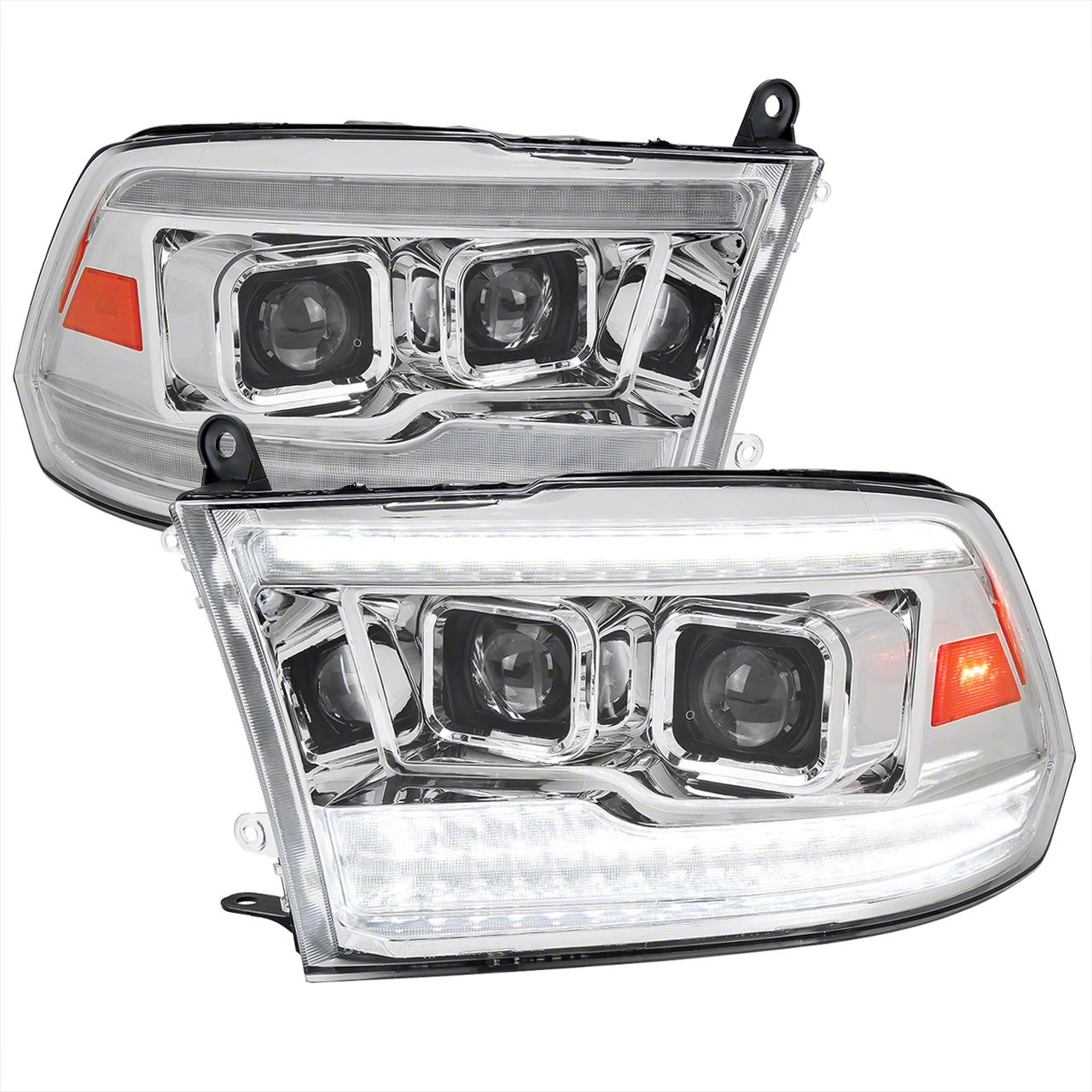 Headlight Makeover. Replace faded or busted headlights with these Switchback Sequential LED Bar Projector Headlights with Chrome Housing and Clear Lens. These headlights will bring back the luster, style, and functionality that your RAM had been missing. With dual projector lenses feature, these headlights will give your RAM the brilliant lighting you need on the road.