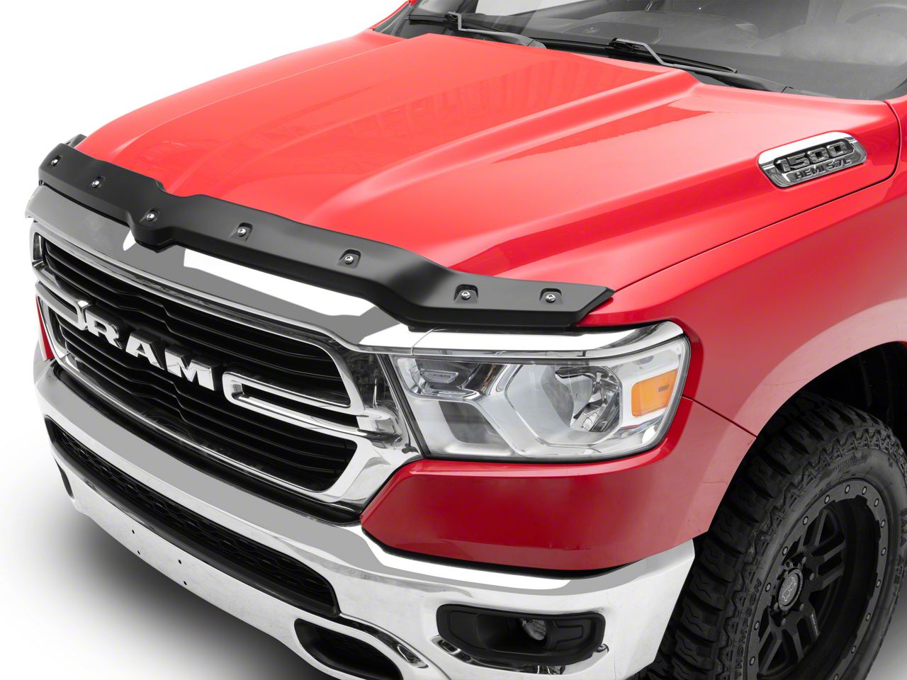 Application. This Tough Guard Hood Deflector works with any 2019-2026 RAM 1500, except for the Rebel , RHO and TRX models.