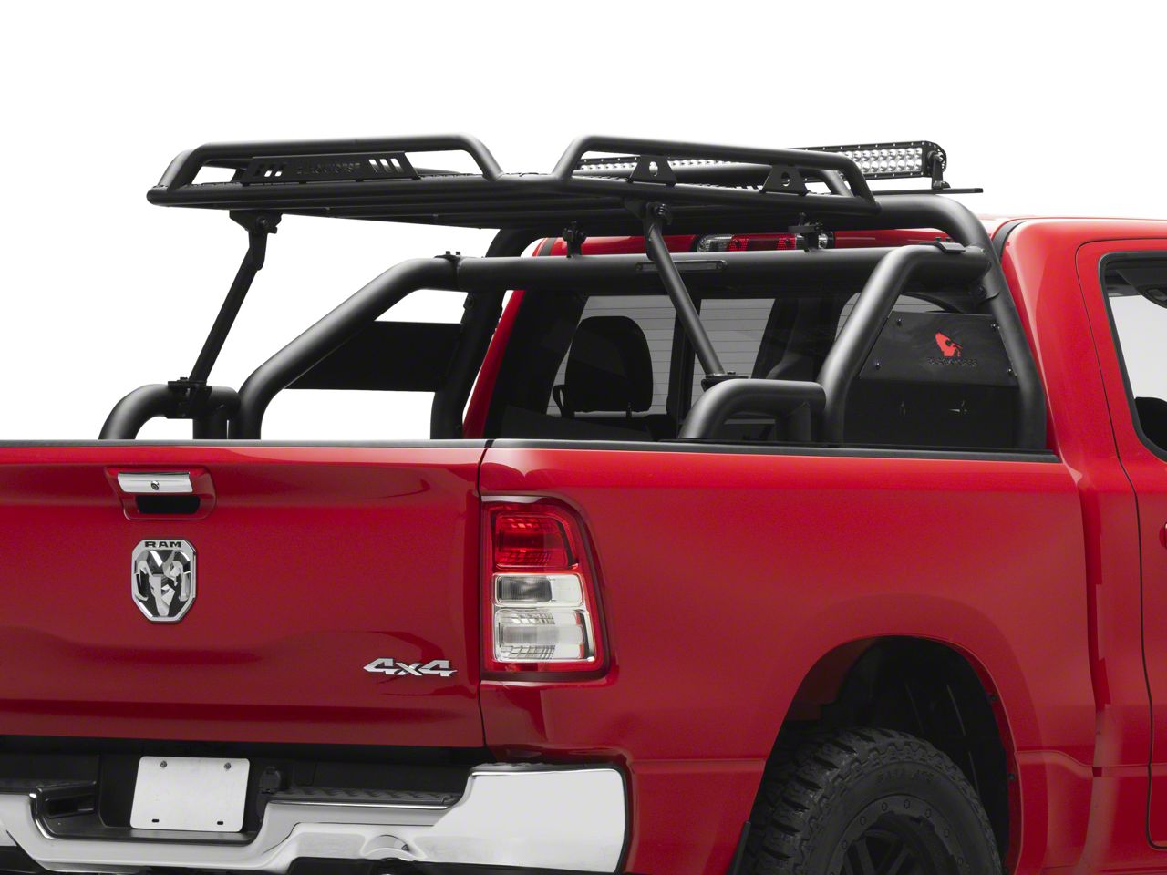 Modern Seat Styling. Add more utility to your RAM 1500 with this Warrior Roll Bar with 50-Inch LED Light Bar; Black. Sporting a tough design and aggressive geometry, it features a heavy-duty style made from strong steel tubes with an overall diameter of 4 inches for reliable anchoring of rope and bungee cords. It comes coated in black, for a tough look that is sure to compliment any color of vehicle.