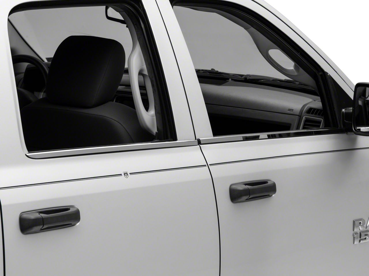 Application. This set of Stainless Steel Window Sill Trim is compatible with all 2009-2018 RAM 1500 Crew Cab models.
