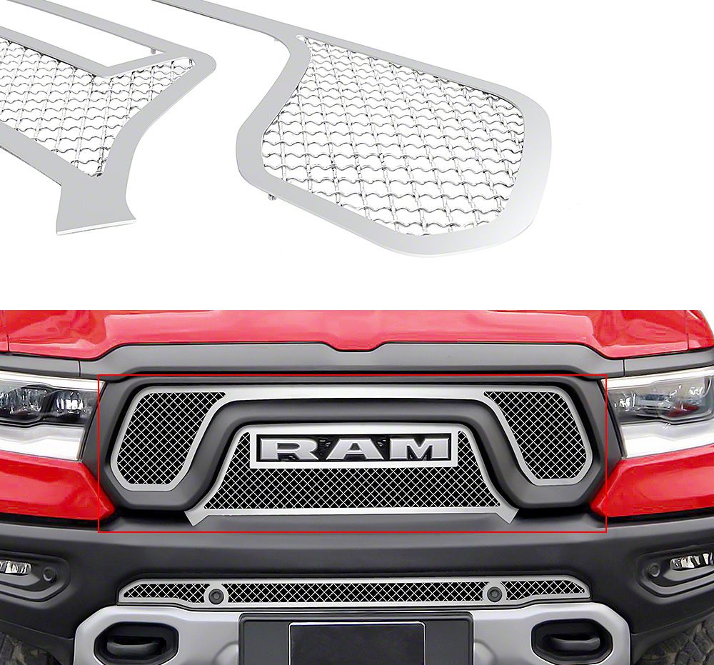Application. The Wire Mesh Upper Grille Insert fits 2019-2024 RAM 1500 Rebel models.