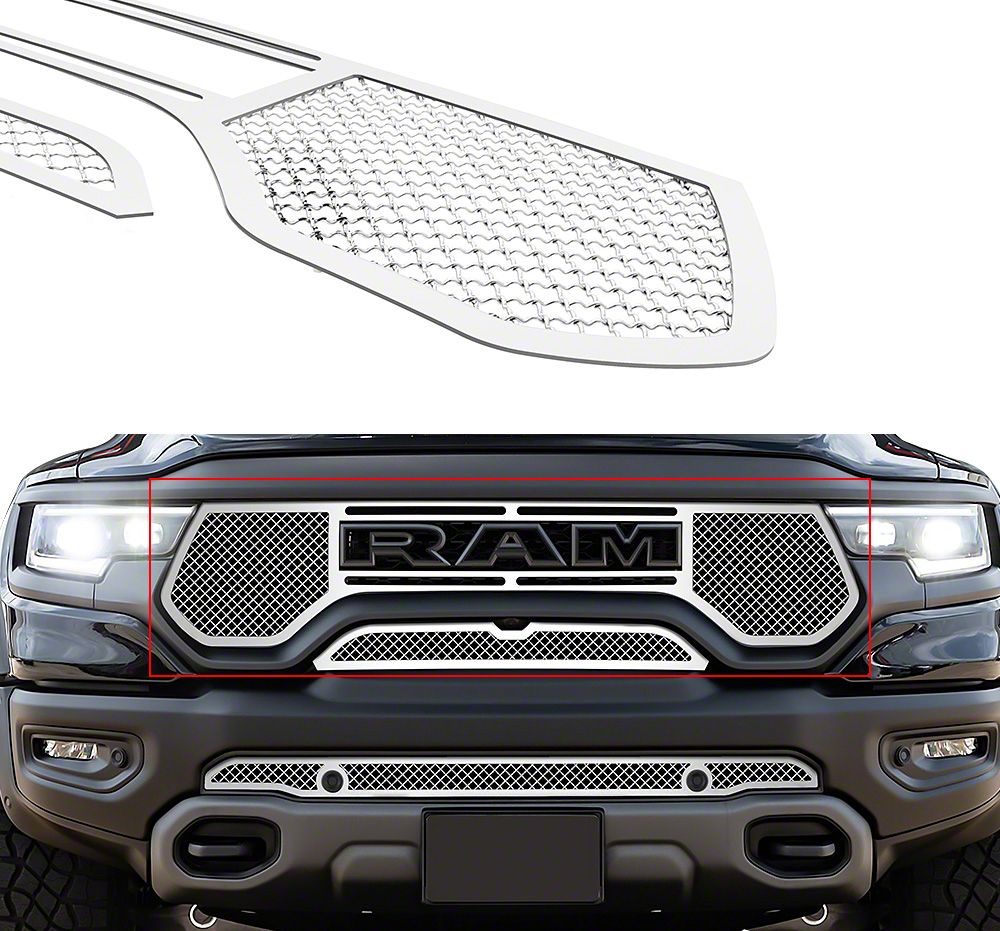 Application. A Wire Mesh Upper Grille Insert is manufactured to accurately fit 2021-2025 RAM 1500 TRXs.