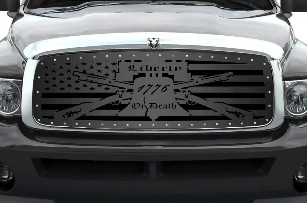 Patriotic Detail. Show everyone you are a patriot with this 1-Piece Steel Upper Grille Insert; Liberty Or Death. Leading the way on your RAM 2500, this Insert blends many of the images that conjure up the freedoms of the United States.