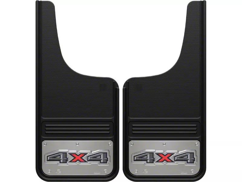 • Rugged 12-Inch x 26-Inch Mud Flaps with 4x4 Logo