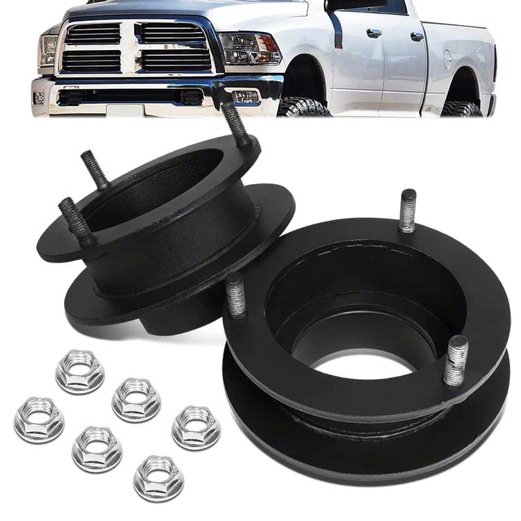 Refined Front Stability. With this 2-Inch Front Leveling Kit, you can keep your RAM looking fresh and tough even after a long day of hauling and cargo carriage. Built from heavy-duty aluminum, the components of this leveling kit promise to provide consistent lift, reduced body roll, and leveled chassis figure.