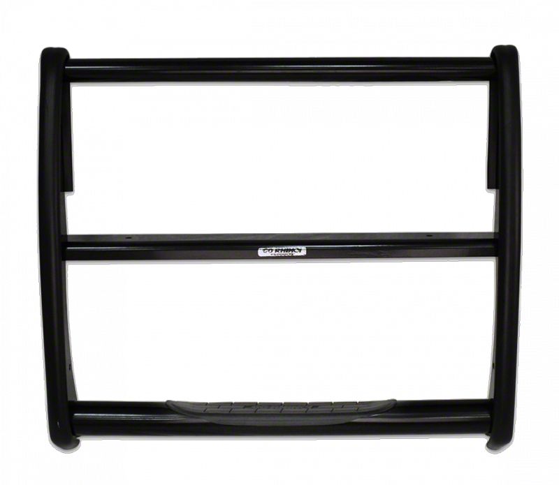 Heavy-Duty Support. Rock a more robust style and guard your front end from road obstacles with this 3000 Series StepGuard Center Grille Guard; Black on your RAM 2500. Made from strong materials, it offers reliable rigidity and toughness against impact as well as corrosive elements from road environment and weather.