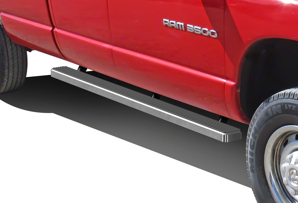 Style and Function. Upgrade the appearance of your RAM 2500 Quad Cab with a set of 4-Inch iStep Running Boards. These great looking iStep Running Boards furnish a convenient 4-Inch wide step for easy entry in and out of your 2500 RAM while giving it a clean, modern appearance. As an added bonus, these Running Boards will help to protect your vehicle's body and paint from stones and road debris that get kicked up while driving.