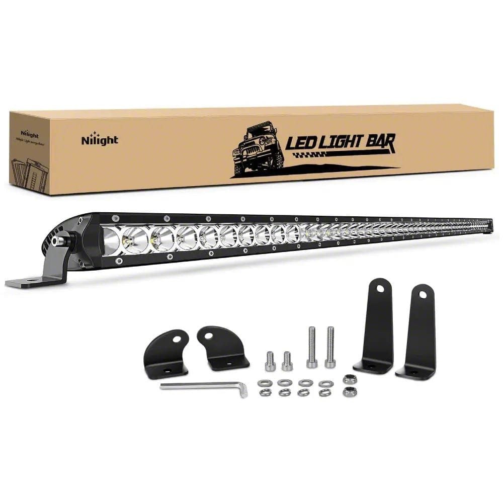 Powerful Off-Road Lighting. The 41-Inch Single Row LED Light Bar delivers high-output illumination tailored for off-road and utility use. With 200 watts of power from 40 five-watt LEDs, it provides a combination spot and flood beam pattern, offering broad visibility and long-distance projection. Whether tackling trails or lighting up worksites, this bar ensures dependable performance when visibility is critical.