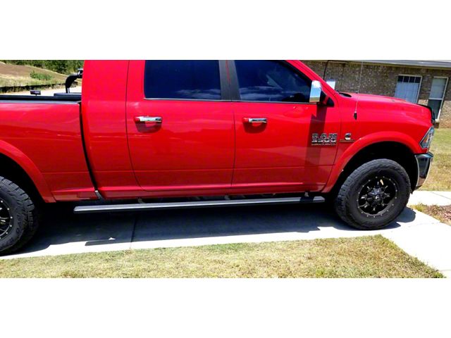 Style and Function. Upgrade the appearance of your 2010-2025 RAM 2500 Mega Cab with a set of 5-Inch iStep Wheel-to-Wheel Running Boards. These great looking iStep Running Boards furnish a convenient 5-Inch wide step for easy entry in and out of your 2500 RAM. As an added bonus, these wheel-to-wheel length Running Boards will help to protect your trucks paint from kicked up stones and road debris.
