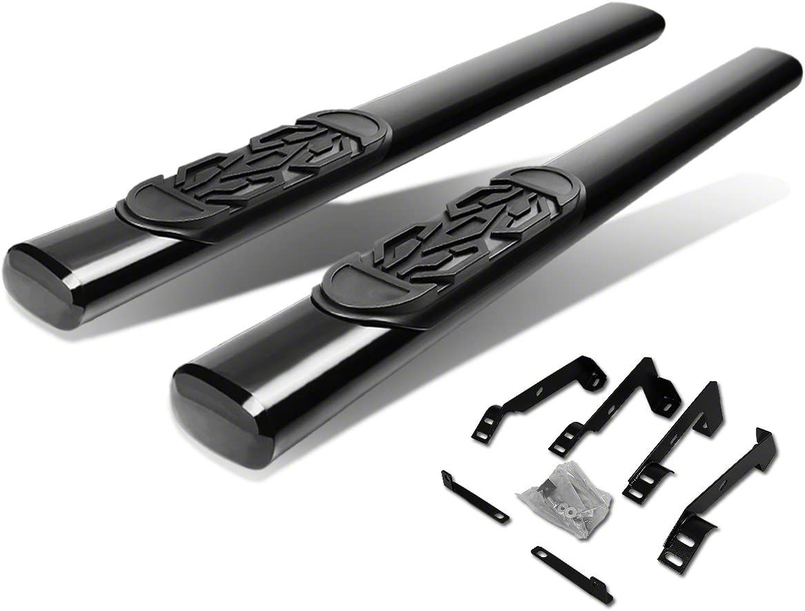 Construction and Appearance. These side step bars are made from rust-resistant mild steel and 6-inch diameter oval steel tubing. There are slip-resistant pads to improve safety. The steps feature a black, powder-coated finish that looks amazing and wards off corrosion.