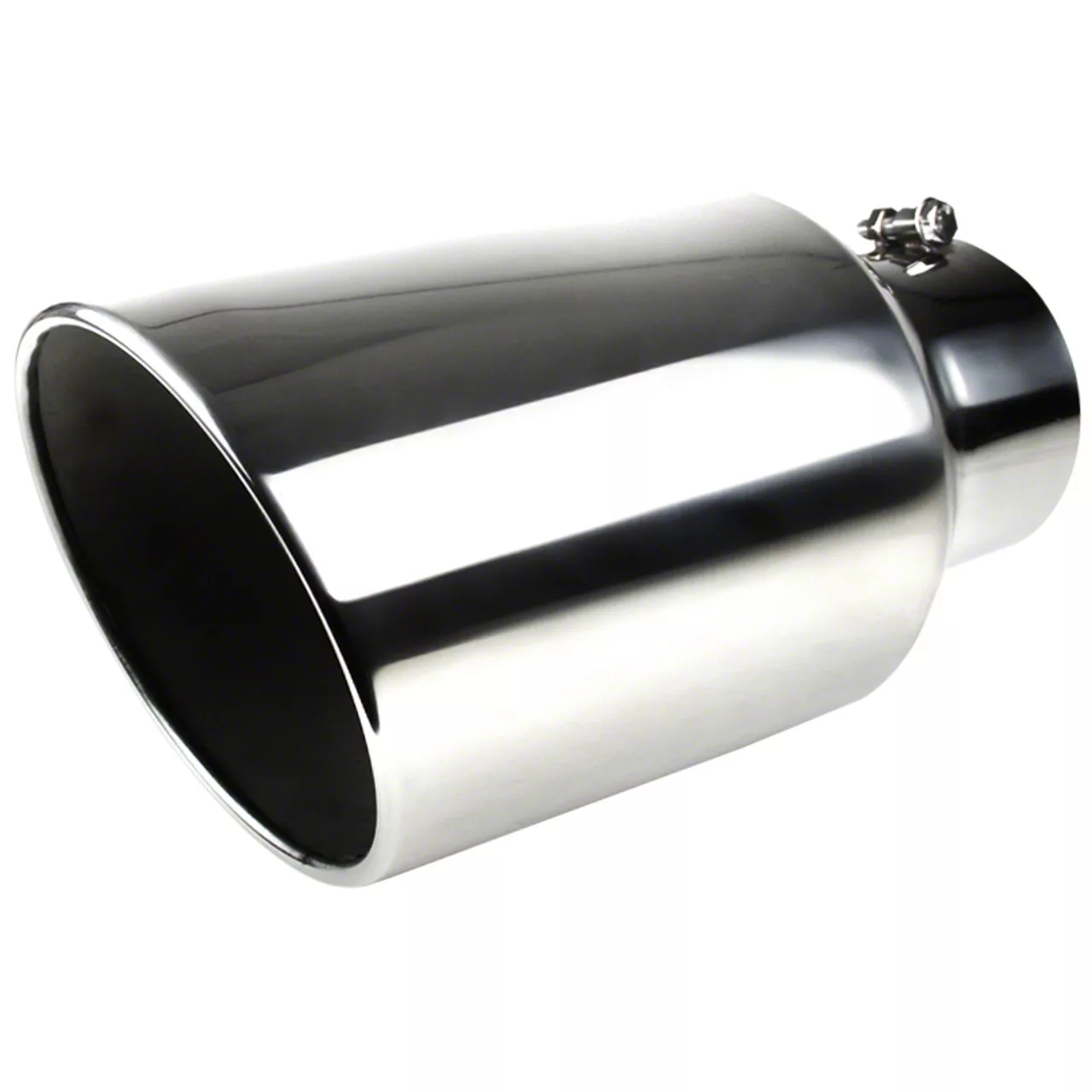 Sturdy Structure. Sporting a 5-inch inlet and an impressive 8-inch outlet, the Angled Cut Rolled End Round Exhaust Tip is designed to accommodate various exhaust systems while facilitating efficient exhaust flow. Constructed from premium stainless steel, it also guarantees resilience and longevity, ensuring your investment stands the test of time. The dazzling chrome finish not only adds a touch of sophistication and refinement to your car but also provides an additional layer of protection against rust and corrosion.