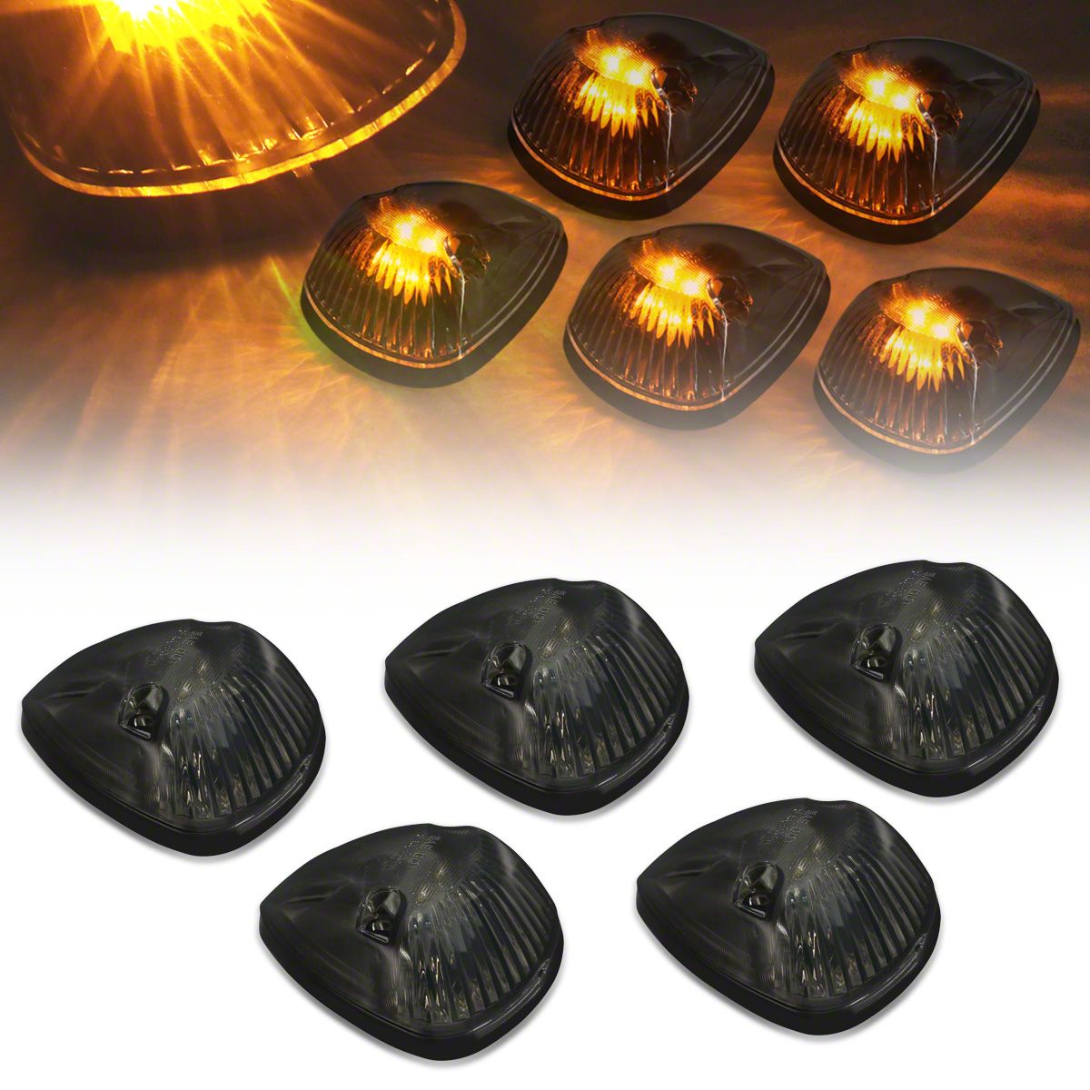 Construction and Appearance. Built with durable housings and smoked lenses, these cab lights combine rugged functionality with a sleek, modern design. Each light is SAE and DOT approved, ensuring quality and proper fitment. The LED technology provides bright amber illumination for long-lasting performance and reduced power draw compared to halogen units.