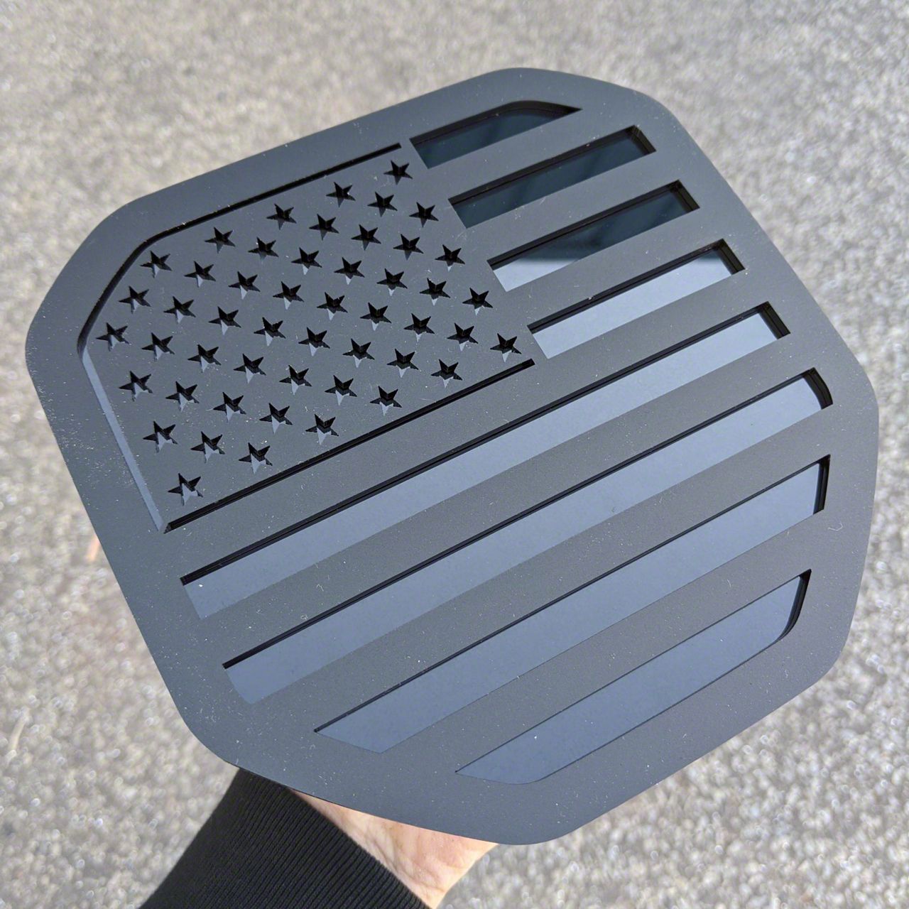 Patriotic Styling. Show love for truck and country with this American Flag Tailgate Badge; Matte Black on Gloss Black to decorate your RAM 2500. Sporting a sleek and strong black exterior, it adds personality and compliments the toughness of your mean machine as well as adds subtle accents to your vehicle's rear end.