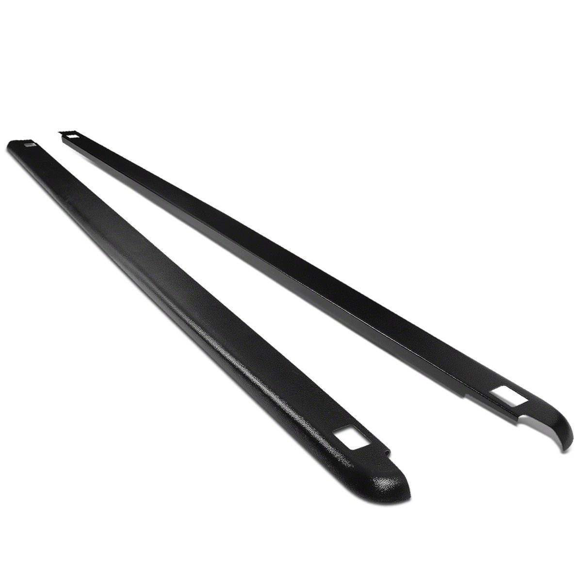 Construction and Appearance. Made from 1/8-inch thick Dura-Flex 2000 material, these bed rail caps are strong, UV-resistant, and warp-resistant. The smooth black textured finish adds a rugged, factory-style appearance while offering long-lasting protection against the elements.
