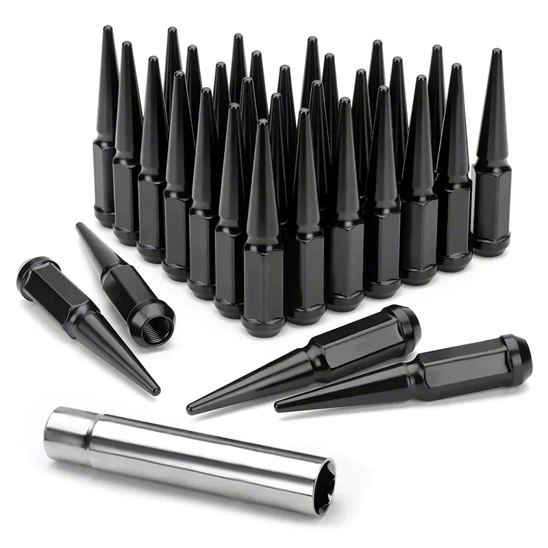 Bold Aggressive Styling. Transform the wheels of your RAM 2500 with the Black Spiked Lug Nuts; M14x1.5; Set of 32. These lug nuts not only add style but also enhance the security of your wheels. Crafted from high-strength materials, these spiked lug nuts are built to endure the rigors of both on-road and off-road conditions. Each lug nut features a high-quality black finish that not only looks striking but also offers resistance to corrosion and fading. This durable coating ensures that your lug nuts maintain their aggressive appearance for years to come.