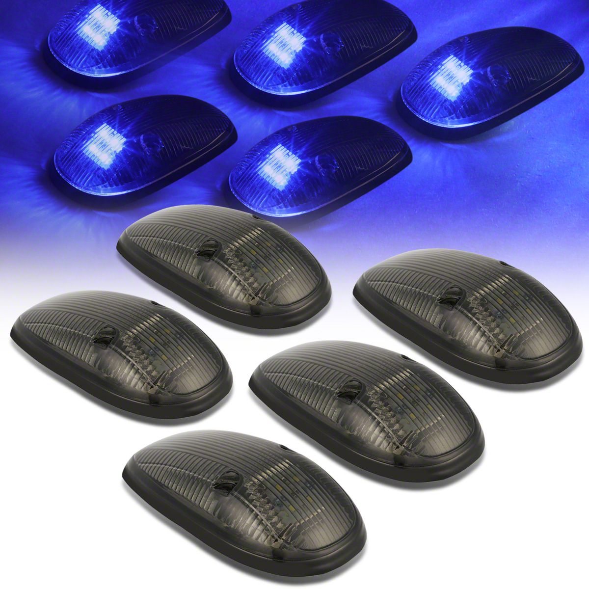 Blue LED Roof Cab Lights; Smoked
