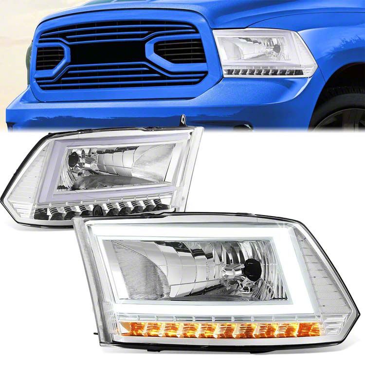 Application. The C-Shaped LED DRL Sequential Headlights with Chrome Housing and Clear Lens are designed to fit 2010-2018 RAM 2500 models with factory halogen dual or quad headlights.