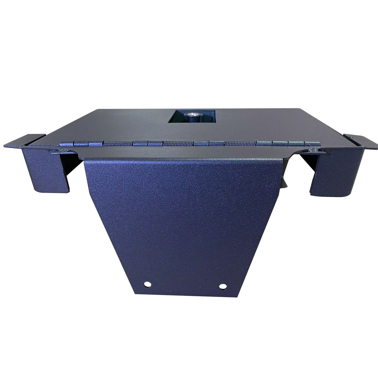 Construction and Appearance. Built from robust 12-gauge cold rolled plate steel, this console safe is both strong and durable. It features a black powder-coat finish for added protection and a sleek look. The safe is constructed with welded tabs and notch seams and integrated with a modern 4-point locking system, ensuring maximum security. The drill-resistant locks and spring-assisted hinge add to its durability and functionality.