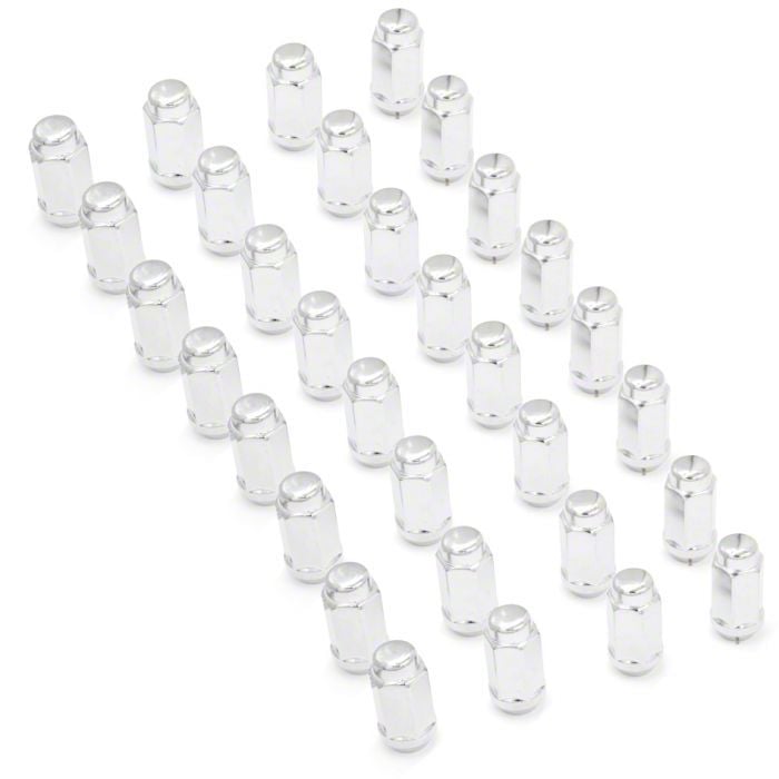 Secures Your Wheels. Wheels are one of the most stolen vehicle parts. To help boost the security of your wheels, equip them with this Chrome 7/8-Inch Bulge Acorn Lug Nut Kit; 9/16-Inch; Set of 32. This lug nut kit includes a total of 32 lug nuts that come with a hex size of 7/8 inches and a lug thread of 9/16 inches. Lug nuts are used to fasten your wheels using a clamping force. When properly torqued, your wheels will be kept secure without loosening.