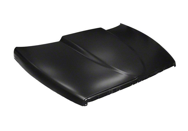 Construction and Appearance. Built from heavy-duty steel, this hood offers excellent durability and structural integrity. It comes in an unpainted finish, ready for prep and custom paint to match your truck's exact color. The stamped contours and raised center section add a race-inspired appearance that stands out.