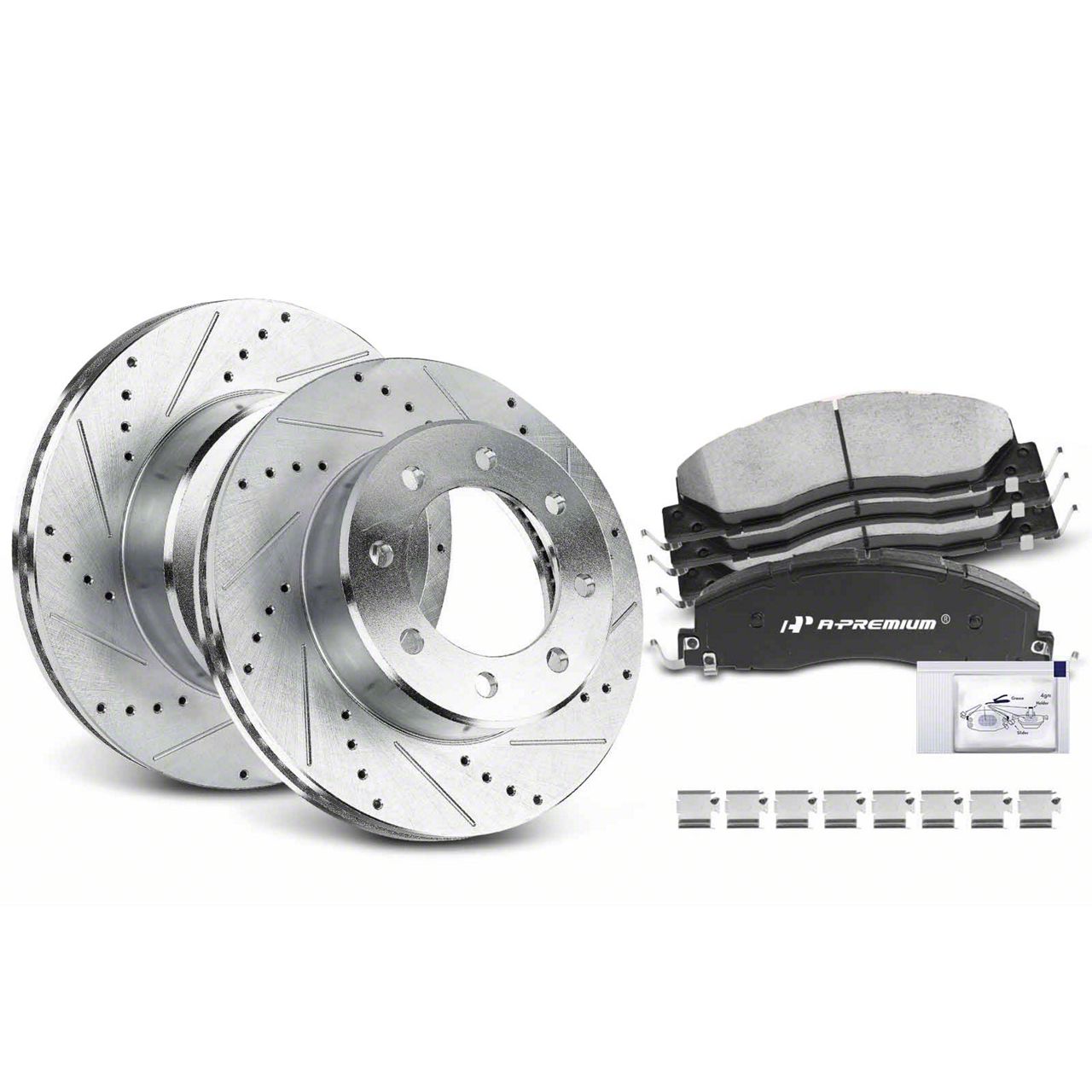 Drilled and Slotted 8-Lug Brake Rotor and Pad Kit; Front (09-18 RAM 2500)Find parts that fit my vehicle