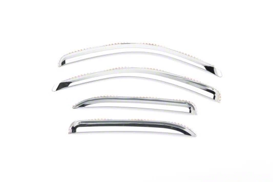 Luxury and Fresh Air. Elevate your RAM 2500 driving experience with the Putco Element Chrome Window Visors; Channel Mount; Front and Rear. It offers a channel mount installation for both the front and rear windows. Finished in dazzling chrome, they blend seamlessly with your vehicle's aesthetics while adding a luxurious touch. Keep your windows slightly open without worrying about the elements. Whether it's a sunny day or pouring rain, these window visors allow for optimal air circulation, making your ride more comfortable.