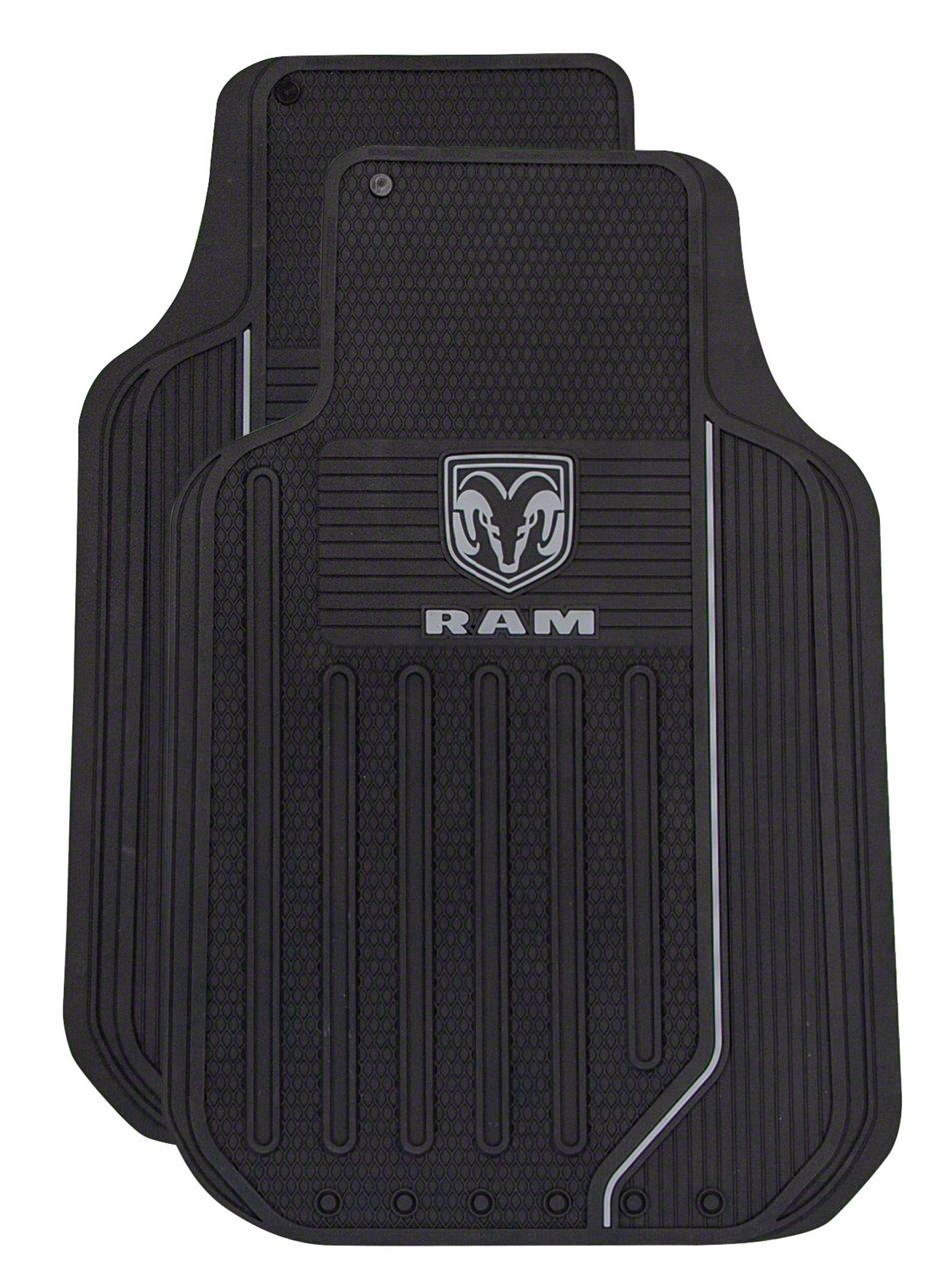 Durable Floor Protection. These Floor Mats are the perfect solution to safeguard your vehicle's interior against mud, liquid, and debris. With their sleek matte black finish and RAM bowtie logo design, they combine functionality with a touch of style. Ideal for drivers who want to maintain a clean and professional-looking interior.