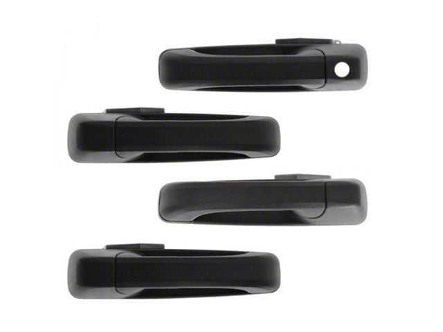 Application. The Exterior Door Handles; Front and Rear; Textured Black fits 2010-2018 RAM 2500 Crew Cab models.