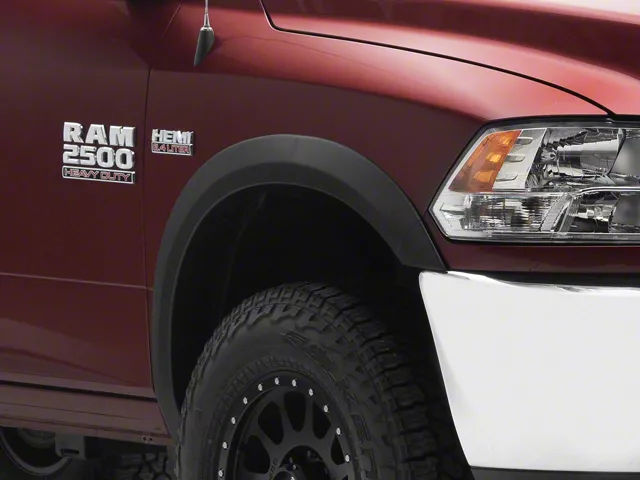 Modern Fender Styling. Add a modern feel to your ride and black off debris with this Factory Style Fender Flares; Textured Black on your RAM 2500. Made from tough ABS polymer, it offers solid protection against kicked-up debris and will not break easily when put against challenging weather and road conditions, keeping your car looking clean and slick.