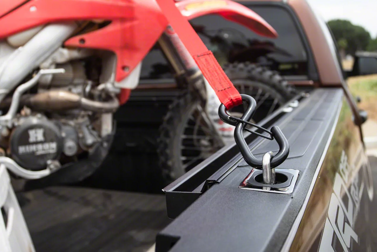 Enhanced Cargo Security. These Tie Down Anchors provide a flush-fit and retractable design, making them a versatile and sleek addition to your truck. Capable of supporting up to 1,000 pounds, they are ideal for securing heavy cargo while maintaining a clean and streamlined truck bed appearance.